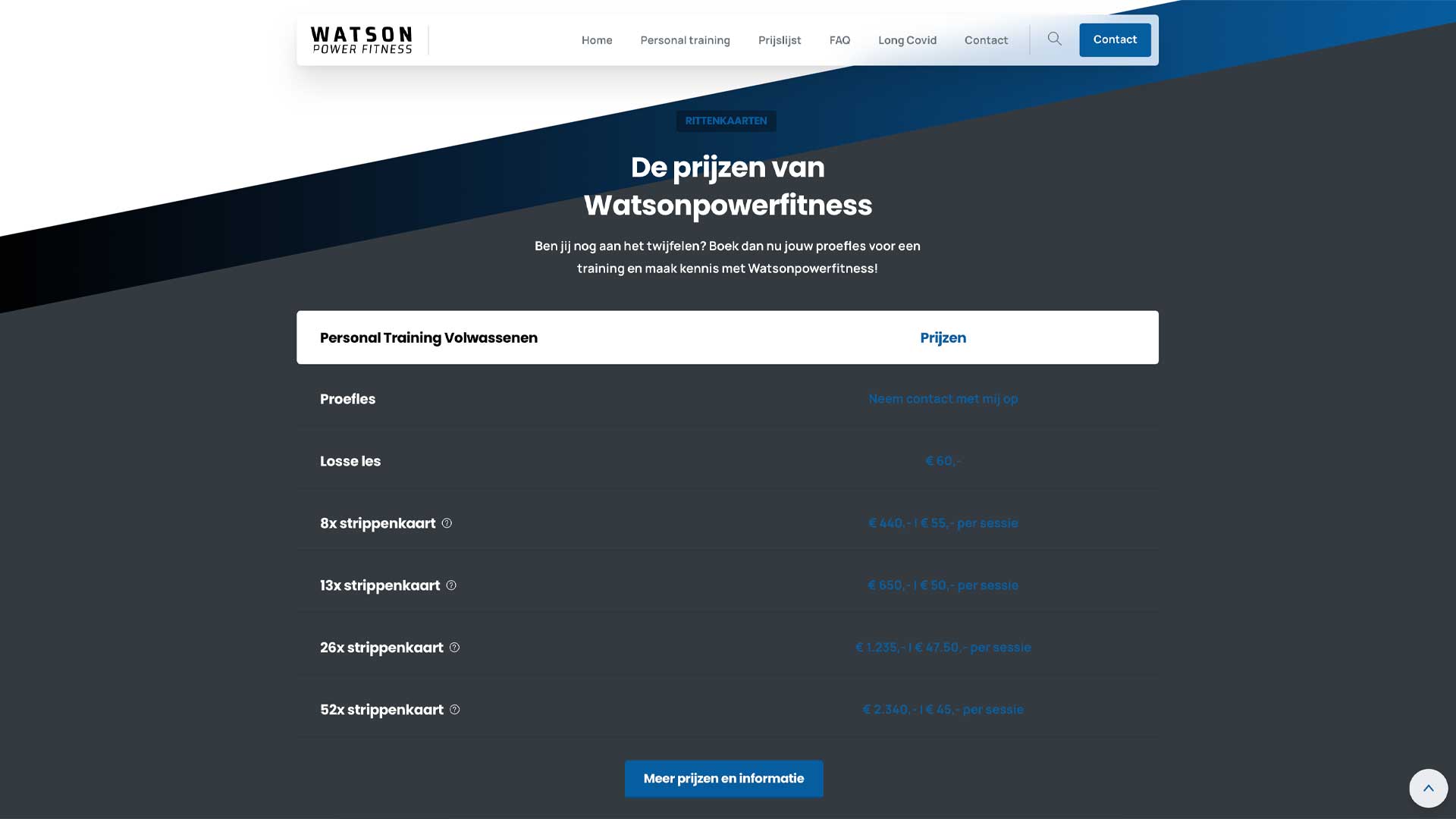 We hebben de nieuwe website van Watsonpowerfitness mogen maken. De website werkt snel, is overzichtelijk en op ieder device beschikbaar. Je kan gemakkelijk meer informatie over een gewenste diensten vinden. Om vervolgens contact op te nemen via het contact formulier, whatsapp of andere contactgegevens.